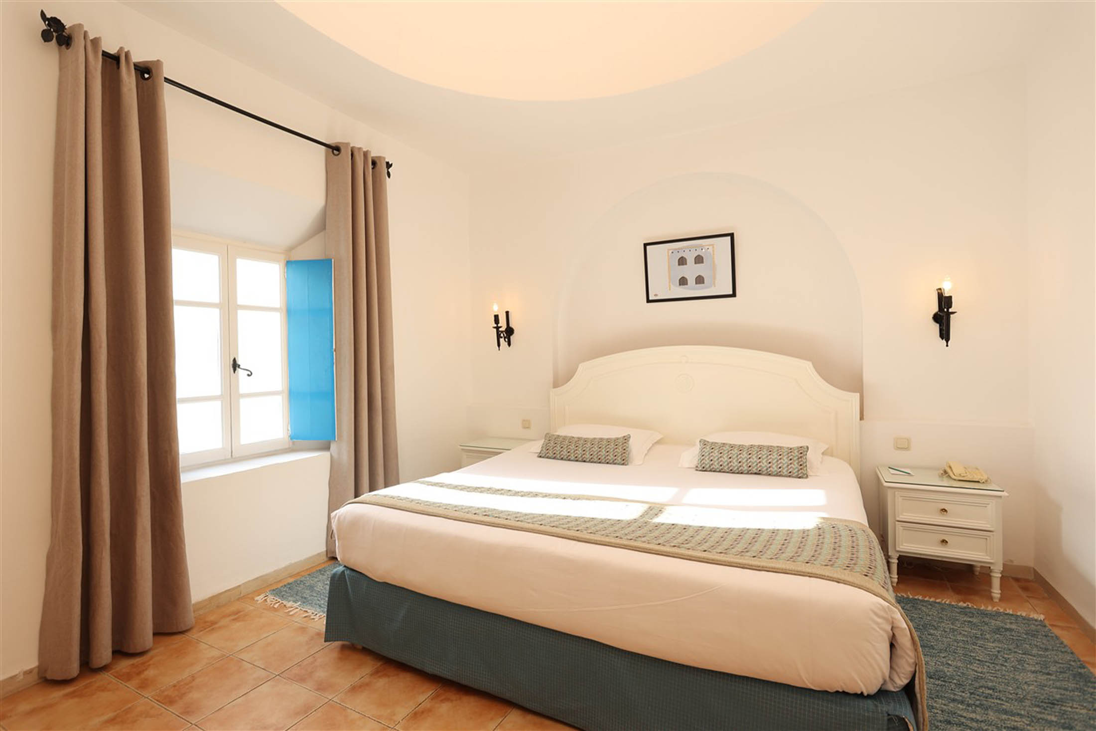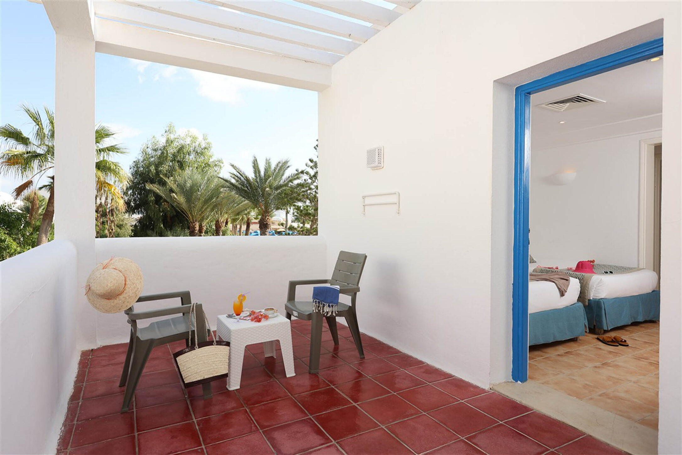 Le Royal Karthago Thalasso & Spa propose 388 chambres standards à Djerba, conçues pour offrir un confort optimal au cœur de notre complexe. D’une superficie de 18 m², ces chambres accueillent de 1 à 2 personnes et s’inscrivent dans une architecture inspirée de l’esprit djerbien des Menzels. Elles disposent soit d'un grand lit (160x190 cm) ou de deux lits simples (85x190 cm), complétés par une banquette pour plus de confort. Fonctionnelles et agréables, elles s’ouvrent sur une petite loggia avec vue jardin, idéale pour savourer un moment au calme.
