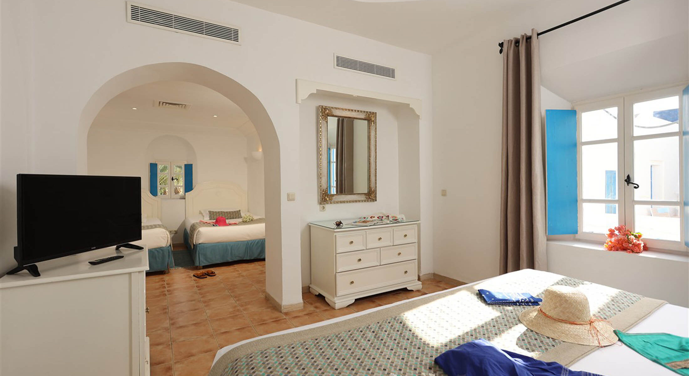 Idéale pour les séjours en famille, la chambre quadruple du Royal Karthago Thalasso & Spa…