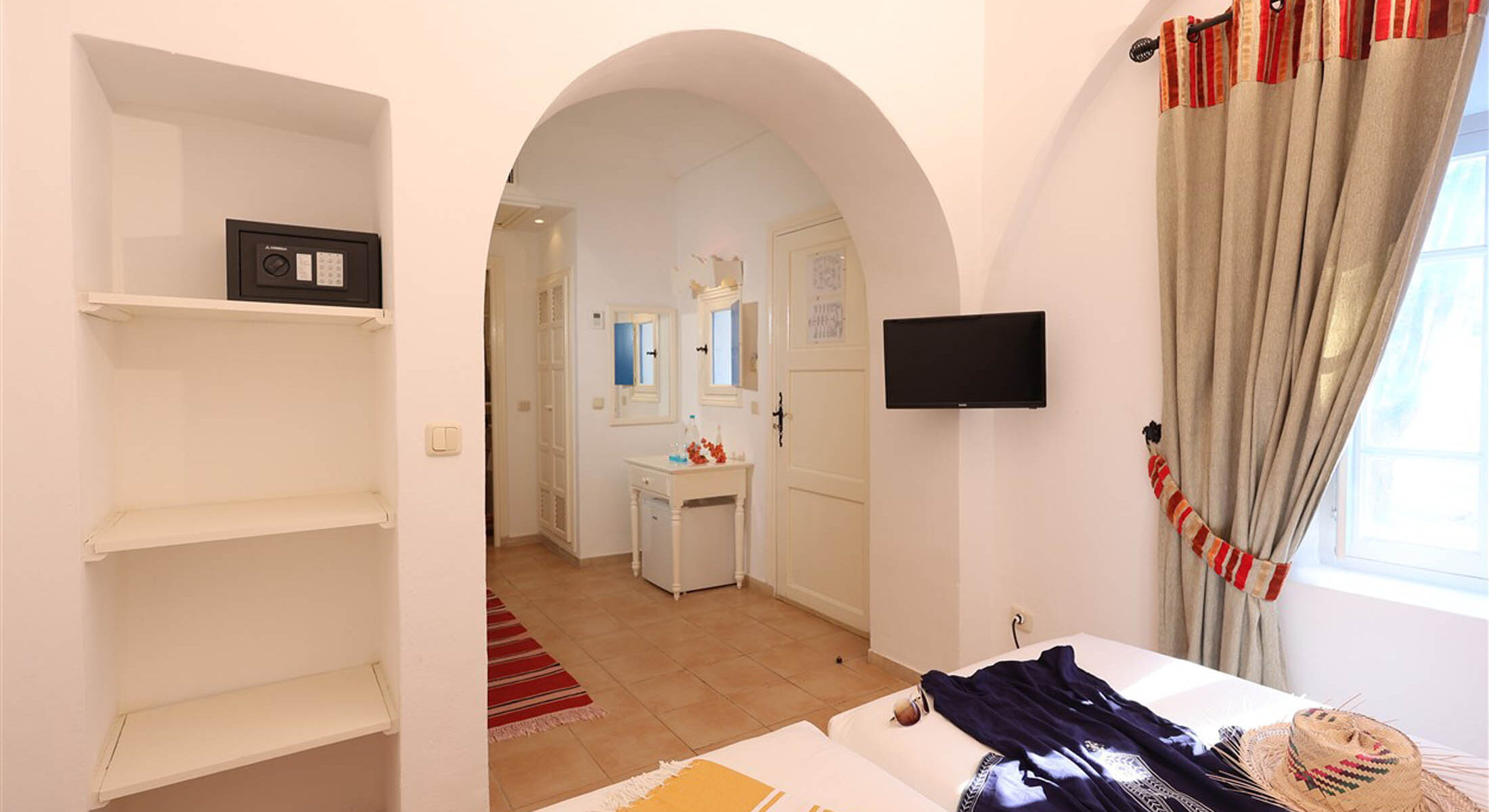 In einer typischen lokalen Architektur, inspiriert vom Menzel-Stil und der djerbischen Dekoration, bieten die Dreibettzimmer des Royal Karthago rund 18 m² für einen angenehmen Aufenthalt mit Freunden oder Familie. Warme Farben, natürliche Materialien, Holz- und Steinelemente spiegeln die lokale Handwerkskunst wider.